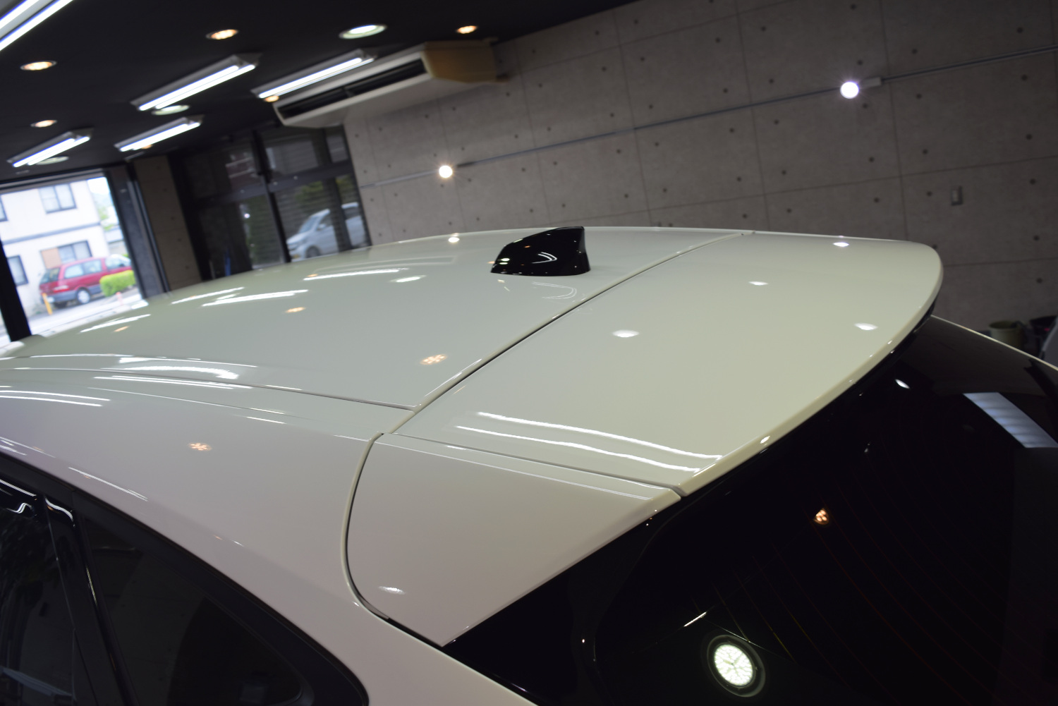 紫外線のダメージは気が付いたときには手遅れになる事が非常に多いです。美しい白色は黄ばんだり、表面のクリア層が劣化していてもなかなか気が付かないうちに退色やダメージが蓄積していきますので色合いや美しさを保つには紫外線対策が必須といえます。リボルトのコーティングには紫外線軽減効果がありますので塗装を守るコーティング被膜がフィルターのように働いてくれますので美しい状態を長期間キープできるコーティングとなっています。またガラスコーティング施工直後のの醍醐味の一つである潤いのある艶や煌びやかな光沢により新車時のような艶やかなボディへ蘇りました。定期的なお手入れにより長い時間美しい姿をお楽しみくださいませ。