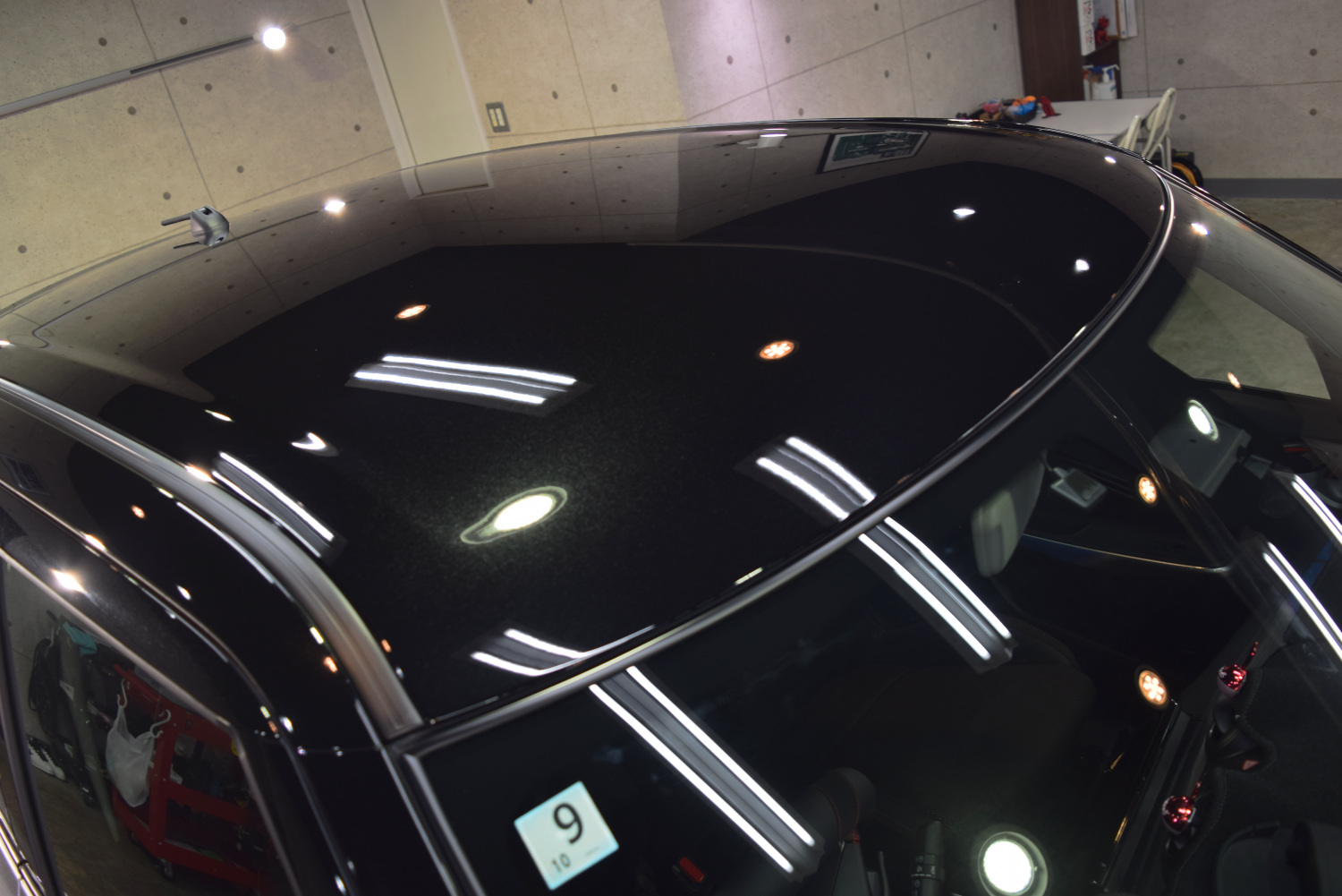 しかし研磨工程を行わない為、脱脂洗浄工程後に水分をしっかり乾燥させてコーティング施工作業となります。ご納車前に保管期間が長い、劣悪な状態での保管であった場合は施工が望ましくない場合がある為、事前に販売店さんなどに一報入れておくのが無難であり、ご納車の日取りが分かった時点でのご相談をしていただければご入庫も融通が利きやすくなります。